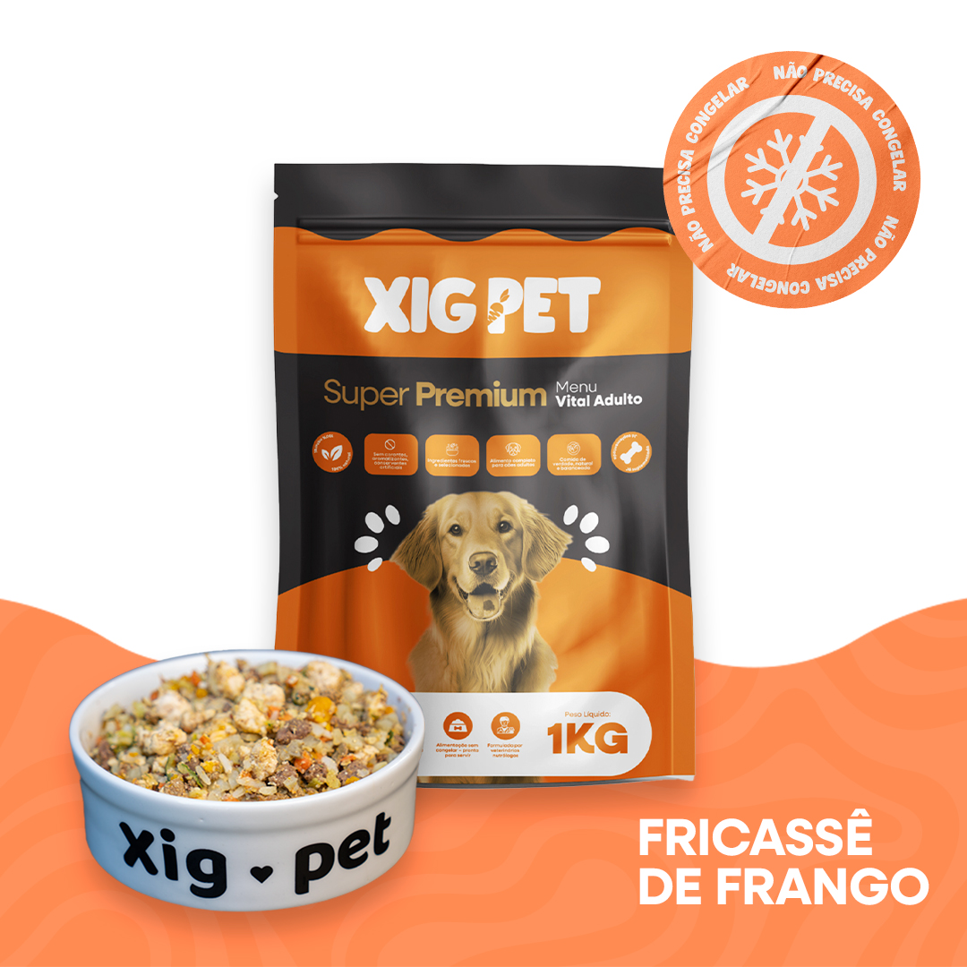 O Fricassê de Frango Xig Pet é um alimento 100% natural, completo e balanceado para cães adultos de todas as raças e portes. Formulado com ingredientes frescos e selecionados, oferece nutrição de alta qualidade com o sabor irresistível do frango. Desenvolvido para manter a praticidade do dia a dia, dispensa congelamento, preservando o sabor e os nutrientes por mais tempo.