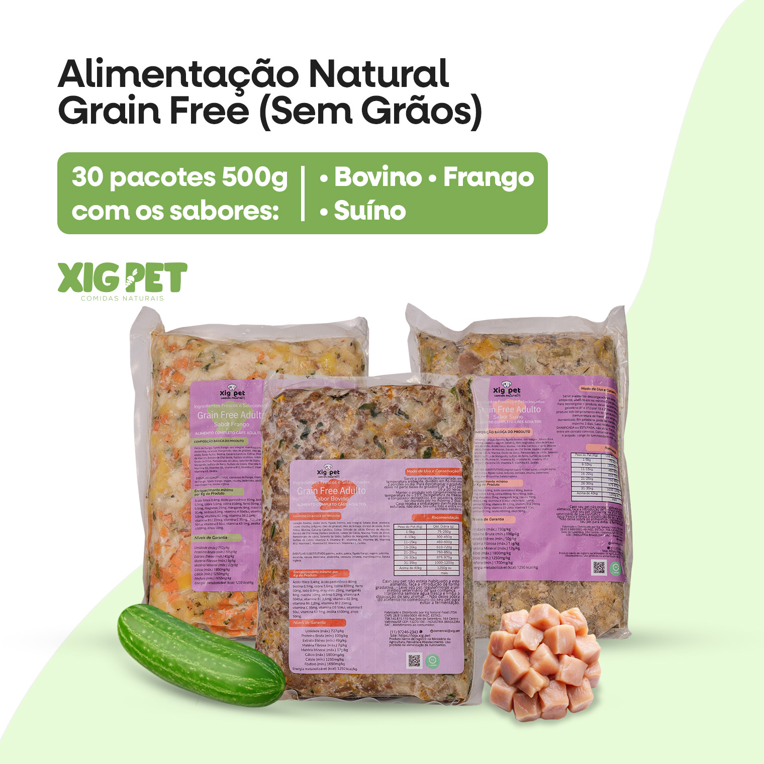 Alimentação Natural Grain Free (sem grãos) - 30 pacotes de 500g